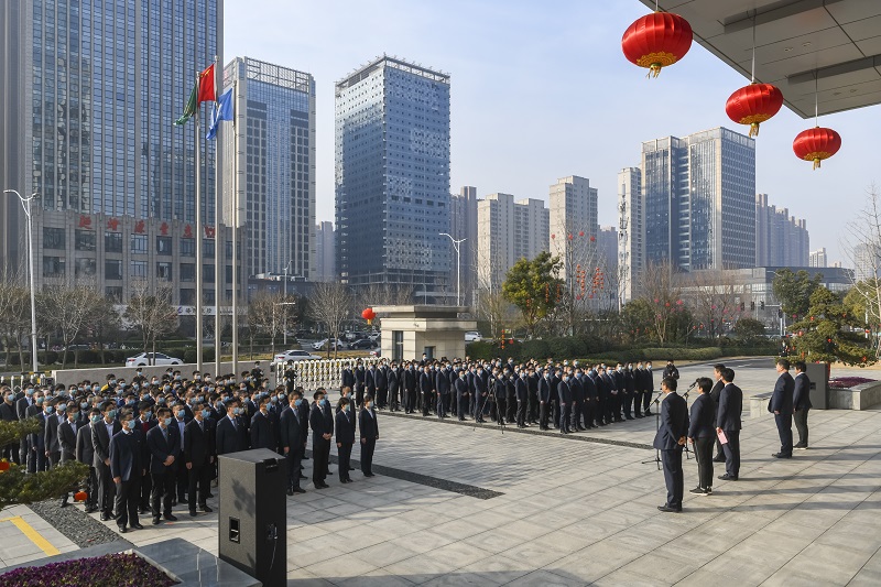 32568公司舉行2021年春節(jié)升旗儀式暨 鄭州市平安建設基層創(chuàng)建示范單位揭牌儀式