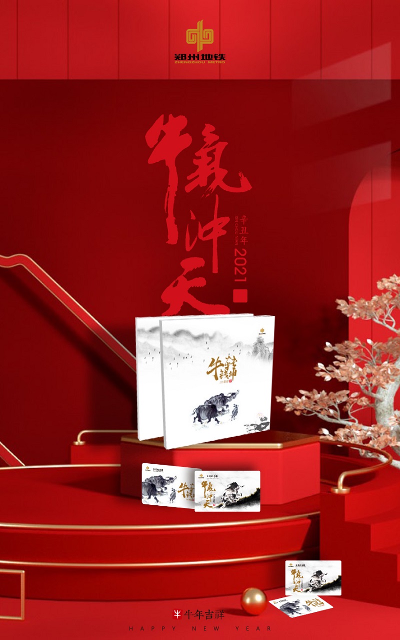 金牛賀歲,五福祥瑞。在新春佳節(jié)到來之際,鄭州地鐵牛年《牛氣沖天》水墨生肖紀念票面向社會公開發(fā)行。丑年為大,大哉開元,本次牛年生肖紀念票采取傳統(tǒng)中國水墨畫風格,畫中吉祥牛兒帶著瑞氣、攜著財氣給大家送福。每套紀念冊內含兩張票卡,每張票卡全線網(wǎng)可乘車10次,使用有效期至2022年6月30日,售價136元/套。乘客可通過鄭州地鐵淘寶文化紀念品官方店、微信地鐵文創(chuàng)薈商城購買。