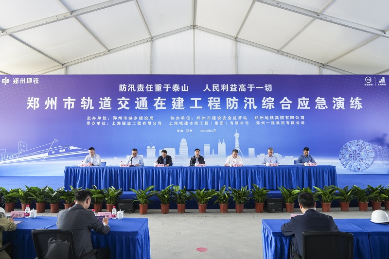 5月12日,由鄭州市城鄉(xiāng)建設局主辦,鄭州市建設安全監(jiān)督站、鄭州地鐵集團有限公司協(xié)辦,上海隧道工程有限公司、上海城建市政(集團)有限公司、鄭州一建集團有限公司承辦的鄭州市軌道交通在建工程防汛綜合應急演練在8號線一期工程02標08工區(qū)文創(chuàng)站組織開展。