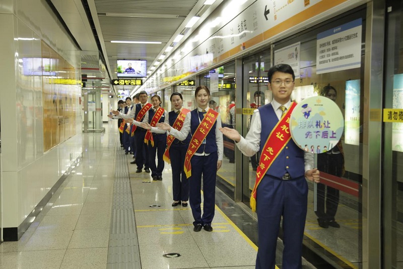 為進(jìn)一步做好《鄭州市文明行為促進(jìn)條例》宣傳推廣工作,在地鐵站內(nèi)掀起學(xué)文明條例、說文明話、辦文明事、做文明人的熱潮,2018年8月10日上午,站務(wù)一室排隊(duì)候車推廣日活動邀請到了鐵路鄭州火車站“丹丹服務(wù)崗”的代表人物梁丹丹及其團(tuán)隊(duì),鄭州地鐵“晶晶服務(wù)”代表人物朱晶玉與梁丹丹一起出現(xiàn)在了1號線鄭州火車站的站臺上,鄭州交通行業(yè)的兩大服務(wù)品牌原型首次見面交流,就文明交通、聯(lián)合共建、客運(yùn)服務(wù)、業(yè)務(wù)提升、品牌打造等方面深入探討。