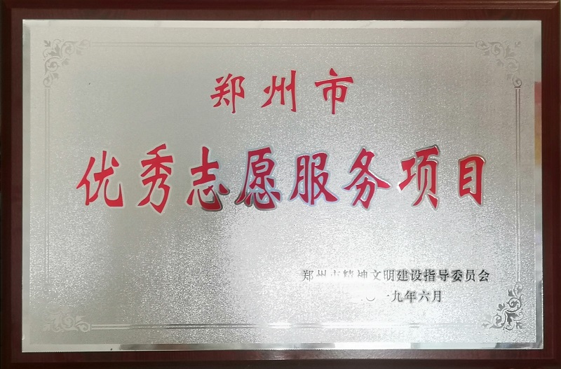 2019年6月,鄭州市精神文明建設(shè)指導(dǎo)委員會授予晶晶服務(wù)“鄭州市優(yōu)秀志愿服務(wù)項(xiàng)目”榮譽(yù)稱號。