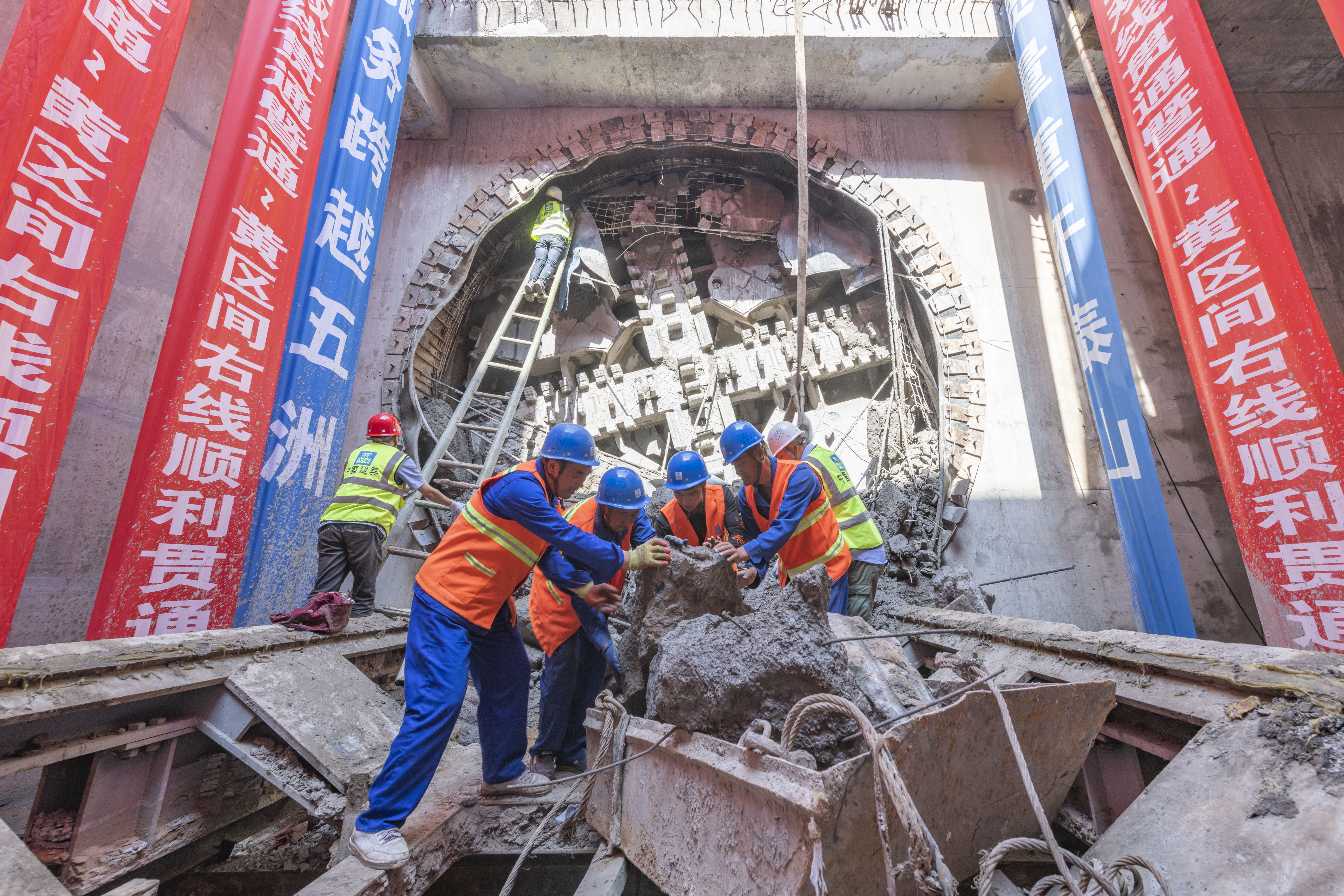 5月9日上午,隨著“中建4號”盾構機刀盤緩緩從接收端破土而出,3號線一期工程世行3001標段通泰路站~黃河東路站區(qū)間(以下簡稱通~黃區(qū)間)右線順利貫通,繼2月12日通~黃區(qū)間左線順利貫通后,至此3號線實現(xiàn)首個盾構區(qū)間雙線貫通,具有里程碑意義。